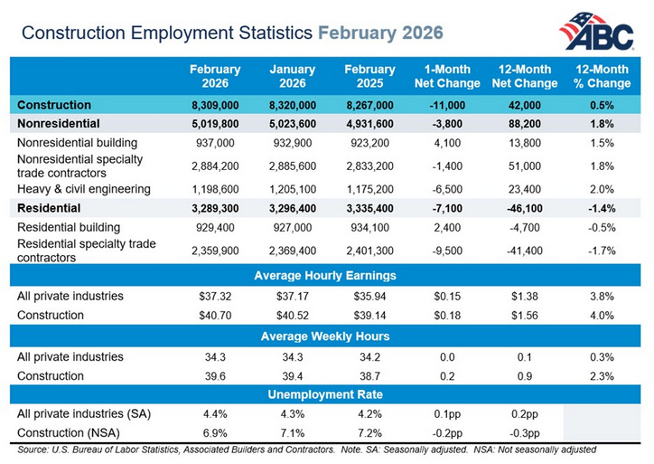 ABC: Construction Loses 11,000 Jobs in February