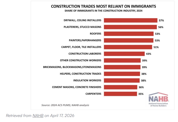 For those reasons, it’s logical to assume “that the foreign-born percentages of workers in immigrant-heavy trades will have declined in 2025 and 2026,” he said.