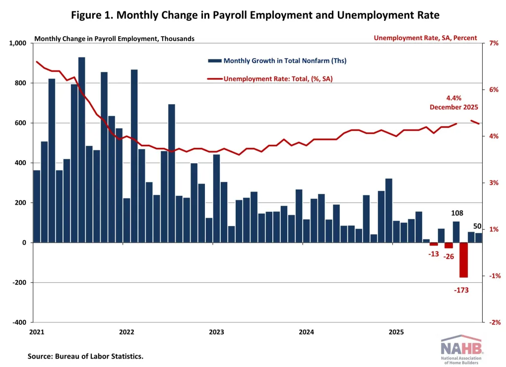 Industry-level data further point to a cooling market. Leisure and hospitality added 47,000 jobs in December, while health care and social assistance employment increased by 38,500. In contrast, retail trade and construction posted job losses as well as several other major industries including manufacturing, transportation and warehousing, and professional and business services, suggesting that hiring softness is broadening across the economy.