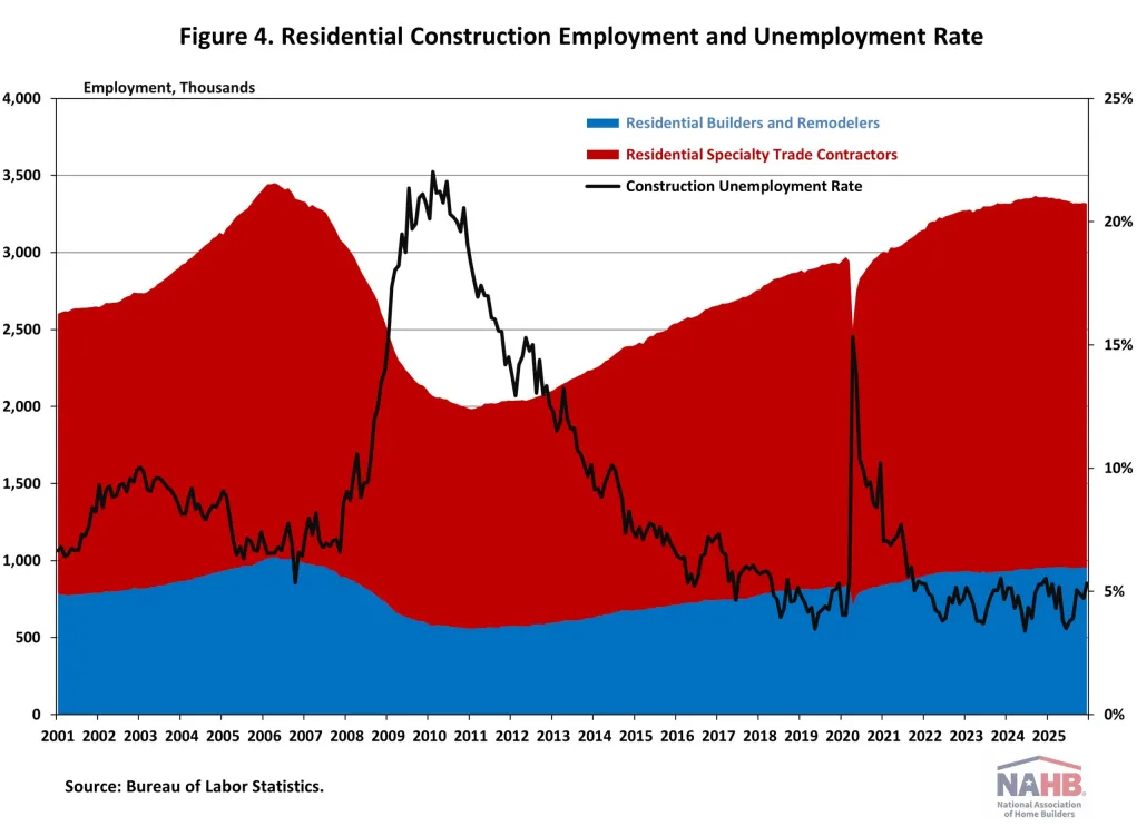 Residential construction employment now stands at 3.3 million in December, including 952,000 workers employed by builders and remodelers and approximately 2.4 million residential specialty trade contractors.