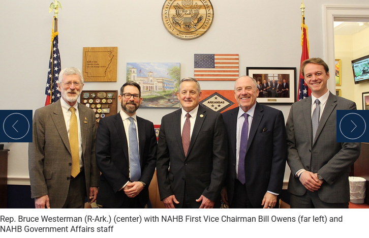 the nation’s supply of affordably priced housing, NAHB First Vice Chairman Bill Owens and Second Vice Chairman Bob Peterson met with congressional leaders on Capitol Hill over the past 48 hours to pursue a strong national agenda for housing.