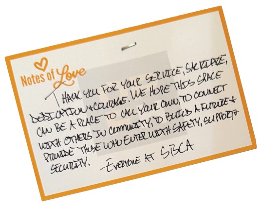 “The Notes of Love event was really special,” says Jack Dermer, SBCA Foundation Trustee. “It was special because you got to meet the people that will be using this community center and are living there in the tiny homes community and hear their stories. It was good to see that and see they have a place to help rebuild themselves and are helping each other overcome their challenges.”