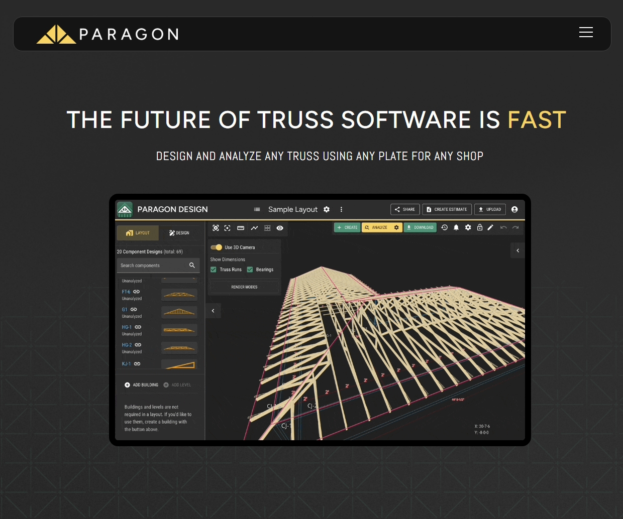 Paragon is a cloud-based platform for structural component design and manufacturing, built to bring openness, flexibility, and innovation to the building industry. With transparent calculations, intelligent workflows, and API-driven integrations, Paragon enables professionals to design, collaborate, and manufacture more efficiently across the entire building component process.