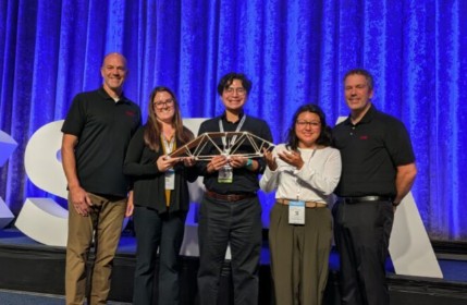 The winning team received a $1,500 scholarship ($500 per team member) from the SBCA Foundation & Endowment towards covering education-related expenses. The team with the best-performing structure was (right to left) Tiffany Scott, P.E., Reyes Alvarez, and Marissa Martinez.