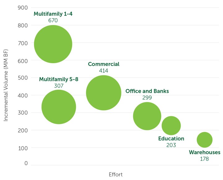 "The added potential for light-frame and hybrid construction, ideally light-frame and mass timber, compounds the opportunities available for incremental volume across the segments, subsegments, and building types," SLB writes.