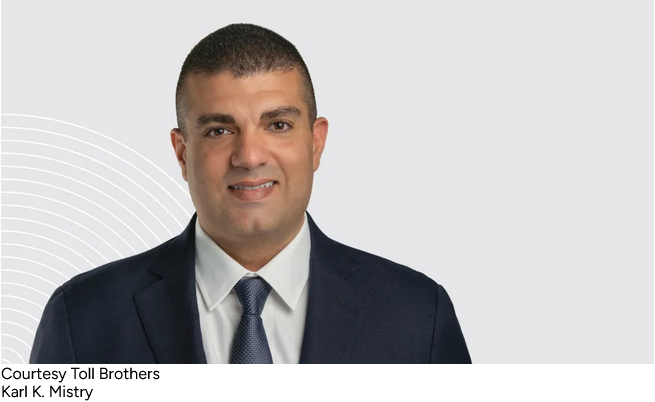 Toll Brothers—No. 10 on the 2025 Builder 100—announced Karl Mistry, executive vice president and a 22-year Toll Brothers veteran, will succeed current chairman and CEO Douglas Yearley, Jr. in the role of CEO at the end of March.