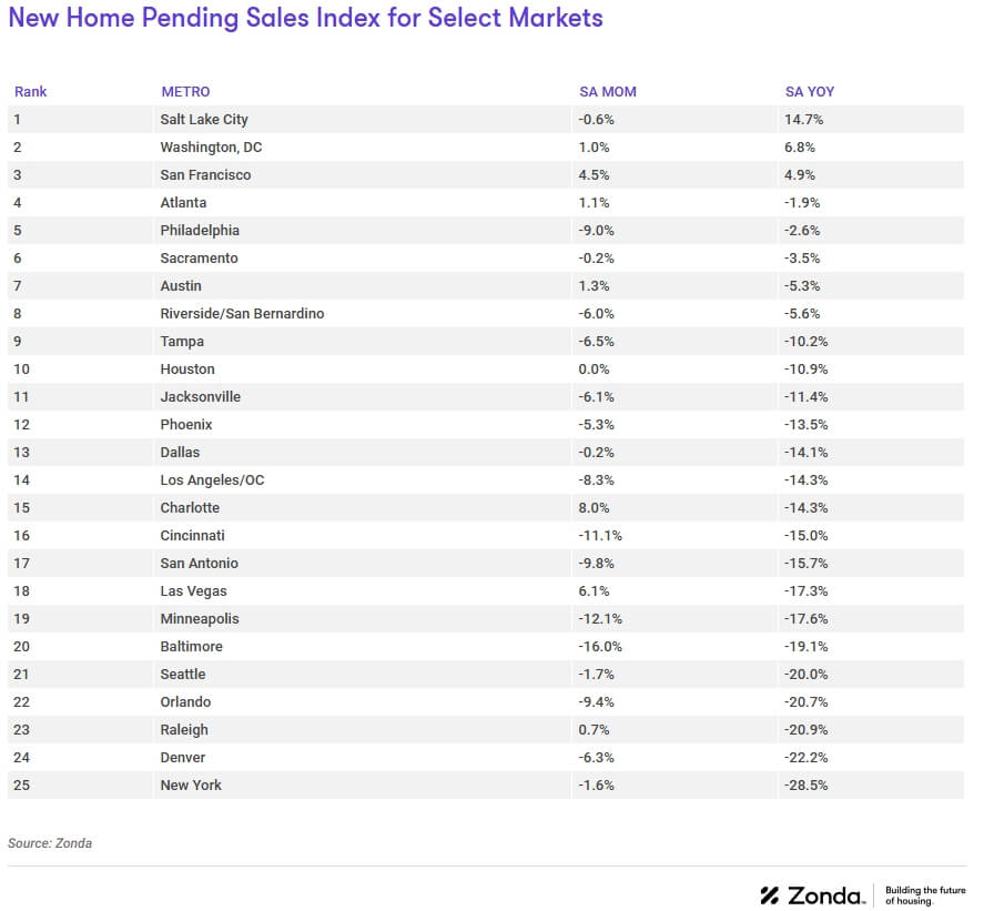 The Zonda New Home Pending Sales Index (PSI) is built on proprietary, industry-leading data that covers 85% of the production new home market across the United States. Reported number of new home pending contracts are gathered and analyzed each month. Released on the 15th business day of each month, the New Home PSI is a leading indicator of housing demand compared to closings because it is based on the number of signed contracts at a new home community. Zonda monitors 17,000 active communities in the country and the homes tracked can be in any stage of construction.
