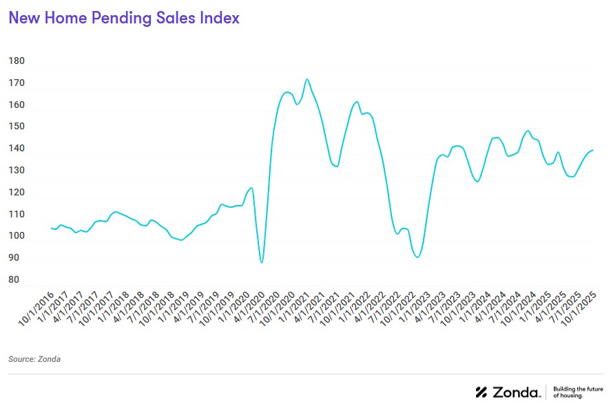 Zonda’s New Home Pending Sales Index (PSI) was created to help account for fluctuations in supply by combining both total sales volume with the average sales rate per month per community. The October PSI came in at 141.9, representing a 3.5% decline from the same month last year. The index is currently 18.5% below cycle highs. On a month-over-month basis, seasonally adjusted new home sales increased 0.8%