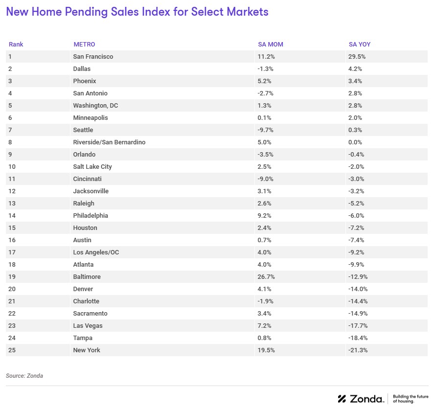 The Zonda New Home Pending Sales Index (PSI) is built on proprietary, industry-leading data that covers 85% of the production new home market across the United States. Reported number of new home pending contracts are gathered and analyzed each month. Released on the 15th business day of each month, the New Home PSI is a leading indicator of housing demand compared to closings because it is based on the number of signed contracts at a new home community. Zonda monitors 17,000 active communities in the country and the homes tracked can be in any stage of construction.